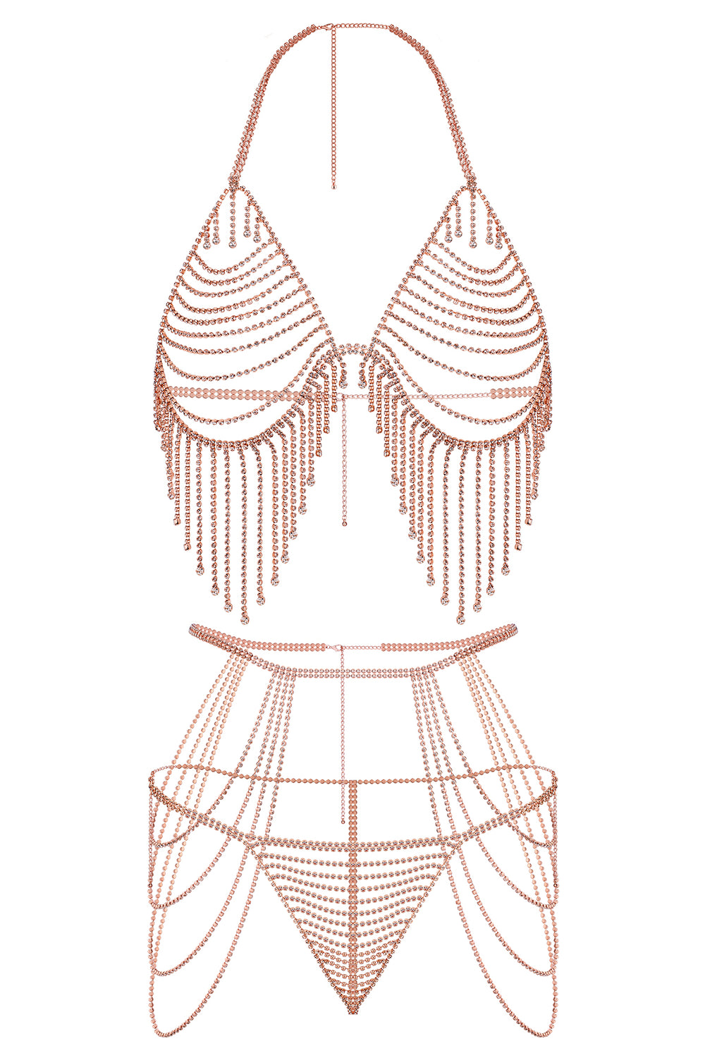 Rhinestone Lattice 2 Piece Sexy Lingerie Set Rose Gold