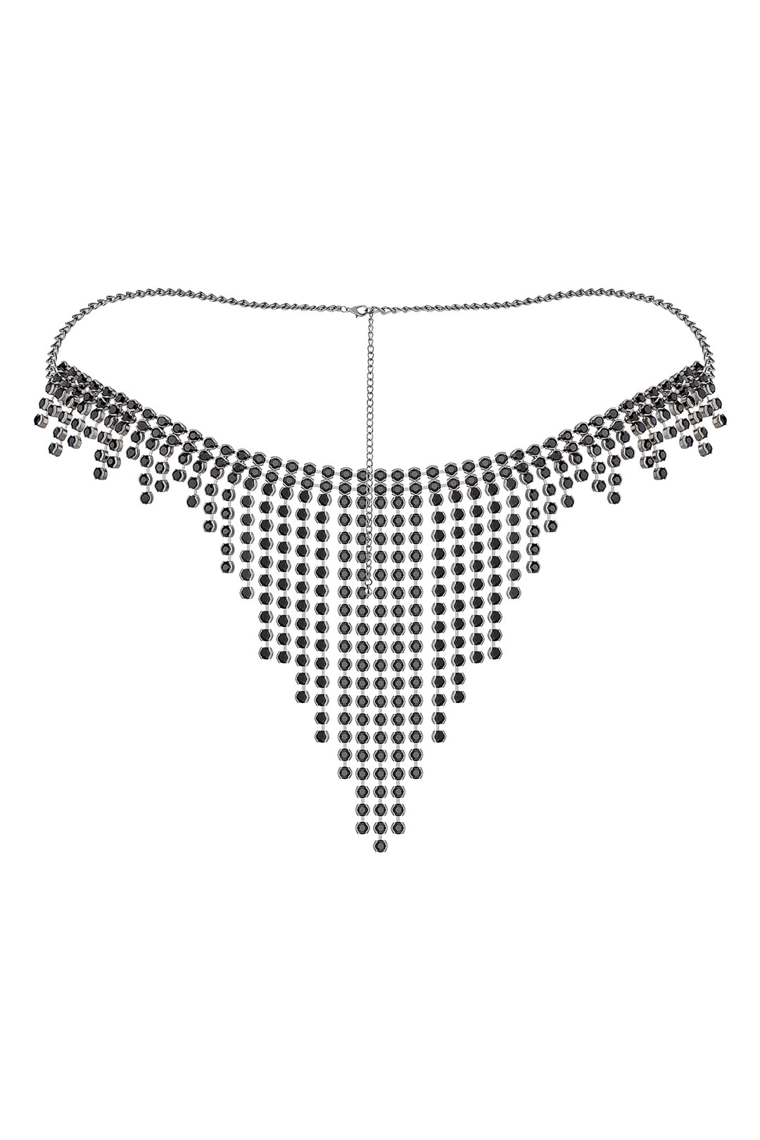 Tanga de Malla con Borlas y Piedras Brillantes Plata