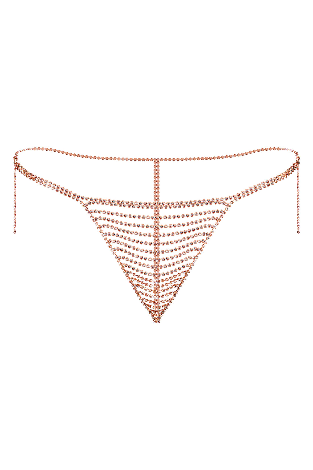Tanga de Rejilla con Piedras Brillantes Oro Rosa
