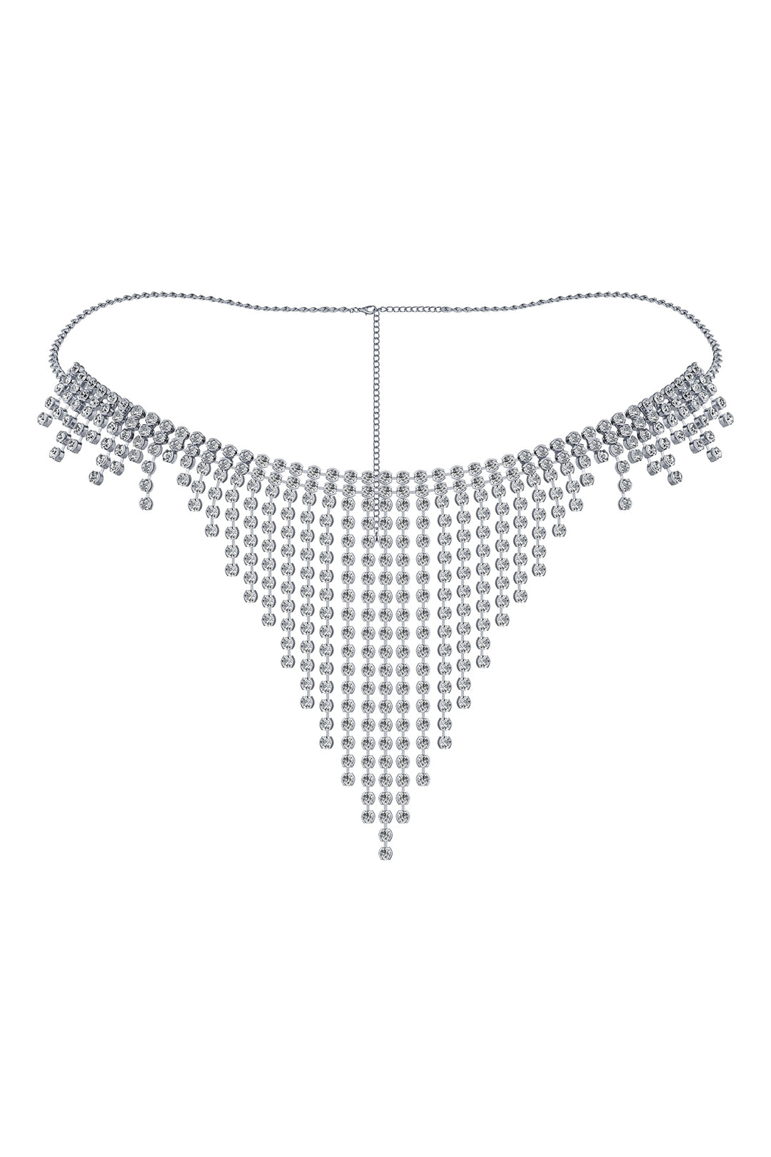 Tanga de cadena de malla con pedrería plateada