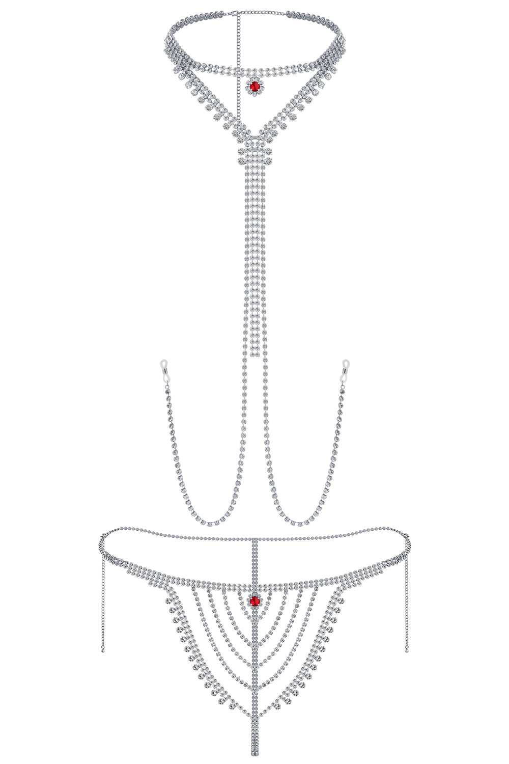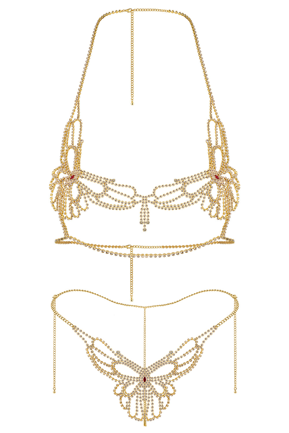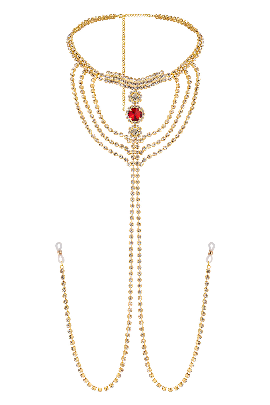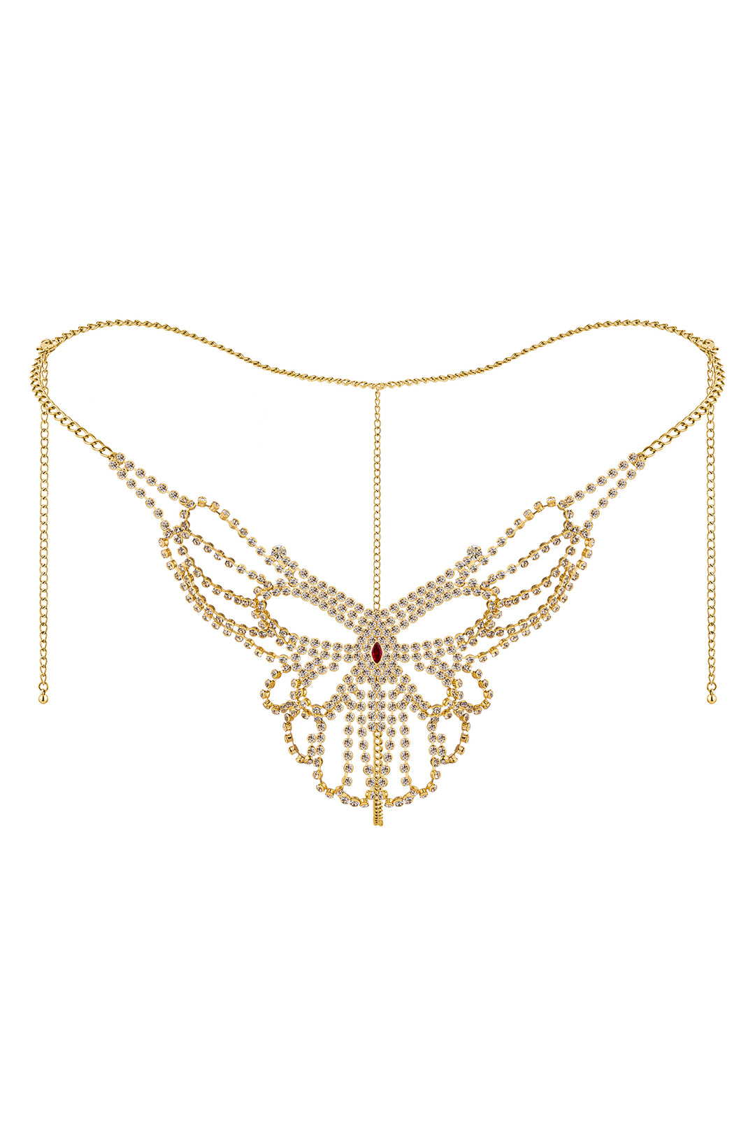 Rhinestone Rhinestone Ruby Nipple Chain Gold