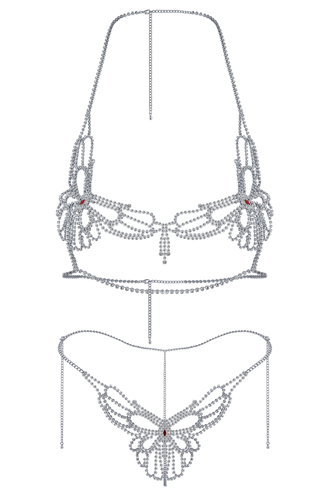 Conjunto de Lencería Sexy de 2 Piezas con Mariposa de Pedrería Plateada